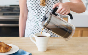The beauty of using a French Press is that it uses less coffee to brew a great cup of coffee. You do not have to use a massive quantity of coffee to extract the flavor. Also, the flavor is raw, earthy, and delicious.