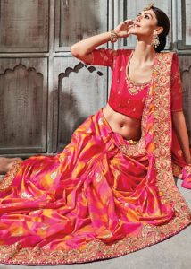 This is a type of saree manufactured in Varanasi, a city in North India. It comes in a range of colors that leave you awed with its beauty.