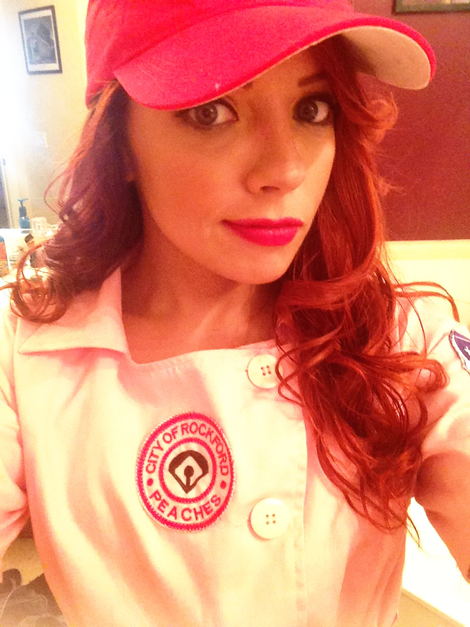 This year, I went as Dottie Hinson (the spitfire girl ballplayer played by Geena Davis from A League of Their Own) since I was determined to stay a redhead for Halloween. Dottie’s makeup is Old Hollywood, but a little rougher and dirtier since she likes to play in the clay. I kicked her simpler look up a notch cause, well, I’m not playing baseball outside.