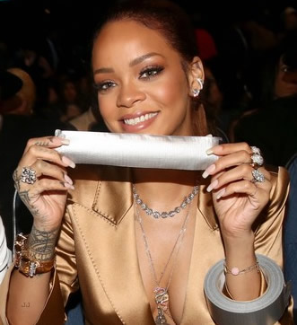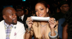 What do you think? Is Rihanna’s name big enough to make the signature nail of the Jersey Shore come back into fashion? Floyd’s certainly not mad at it. (But what’s with the duct tape?)
